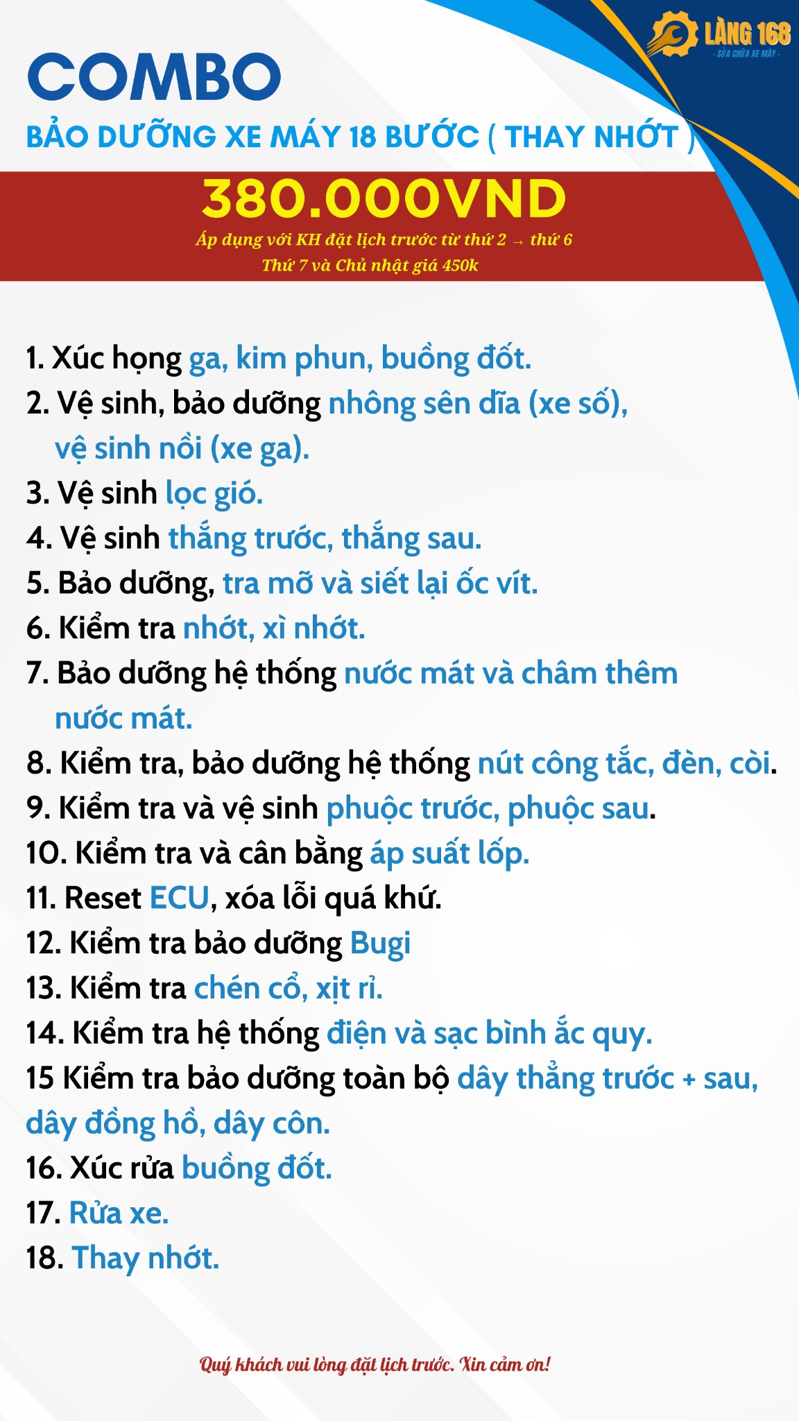 - Rửa xe miễn phí sau khi hoàn tất